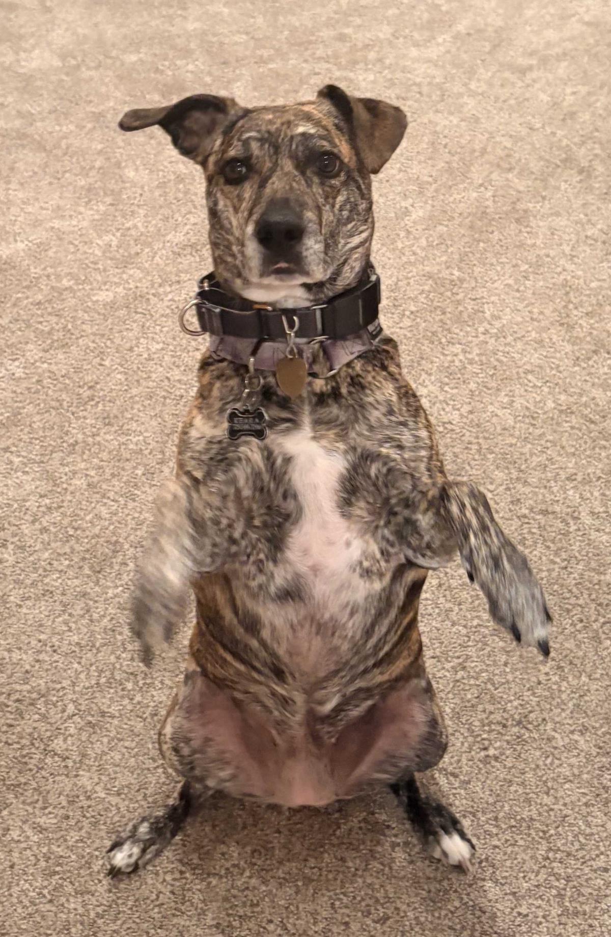 Despite his high-octane play style, Smokey is a total sweetheart. He truly has never met a stranger. Because of his size and enthusiasm, he’d do best in a home with older children.