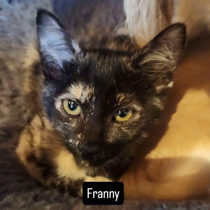 Franny and her siblings were removed from a hoarding situation by a local shelter who then reached out to us as they only take dogs. Franny is a sweet, shy kitten who will need a patient owner where she feels safe and loved. They will be ready for adoption in late November.
